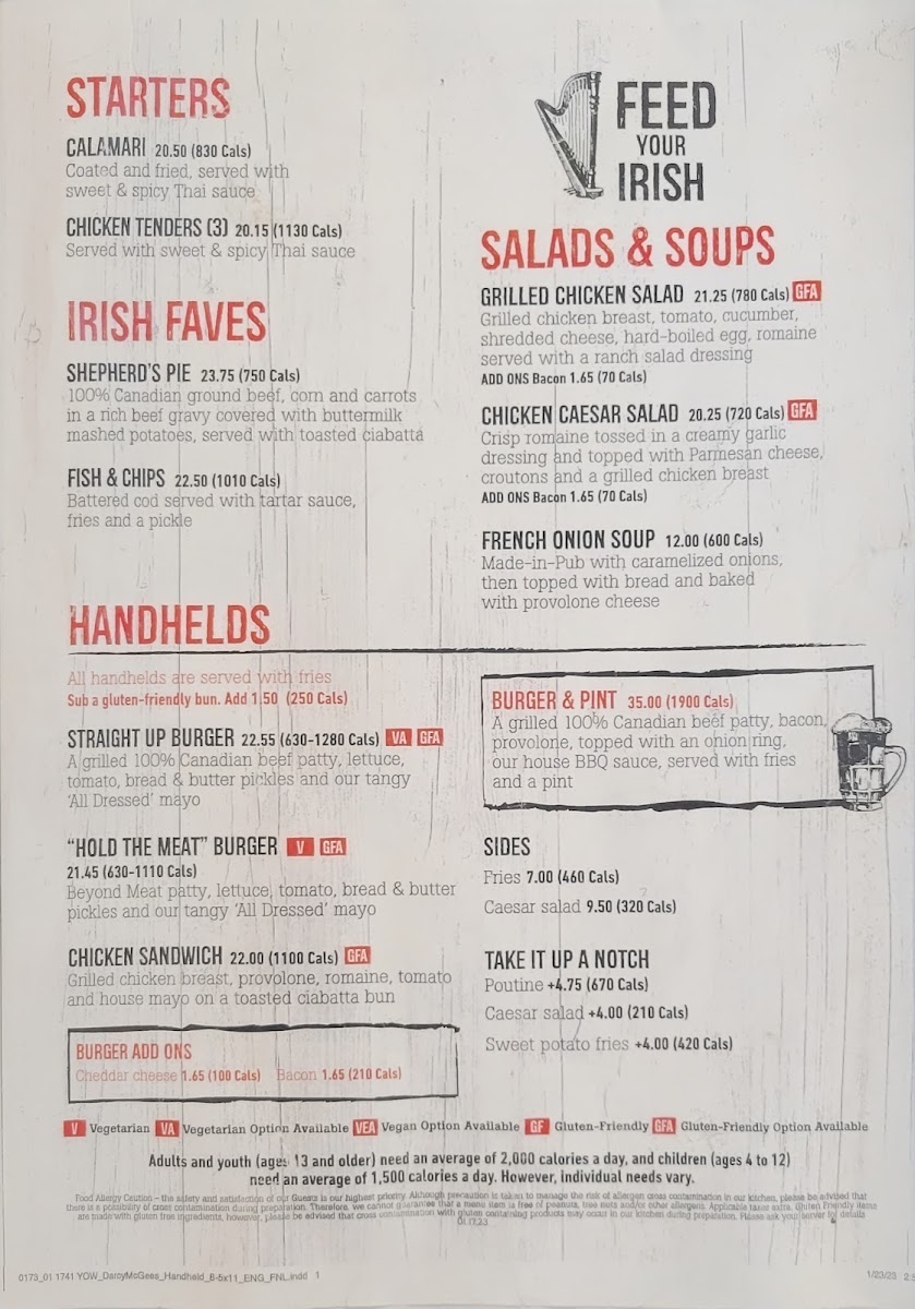 D'Arcy McGees Menu